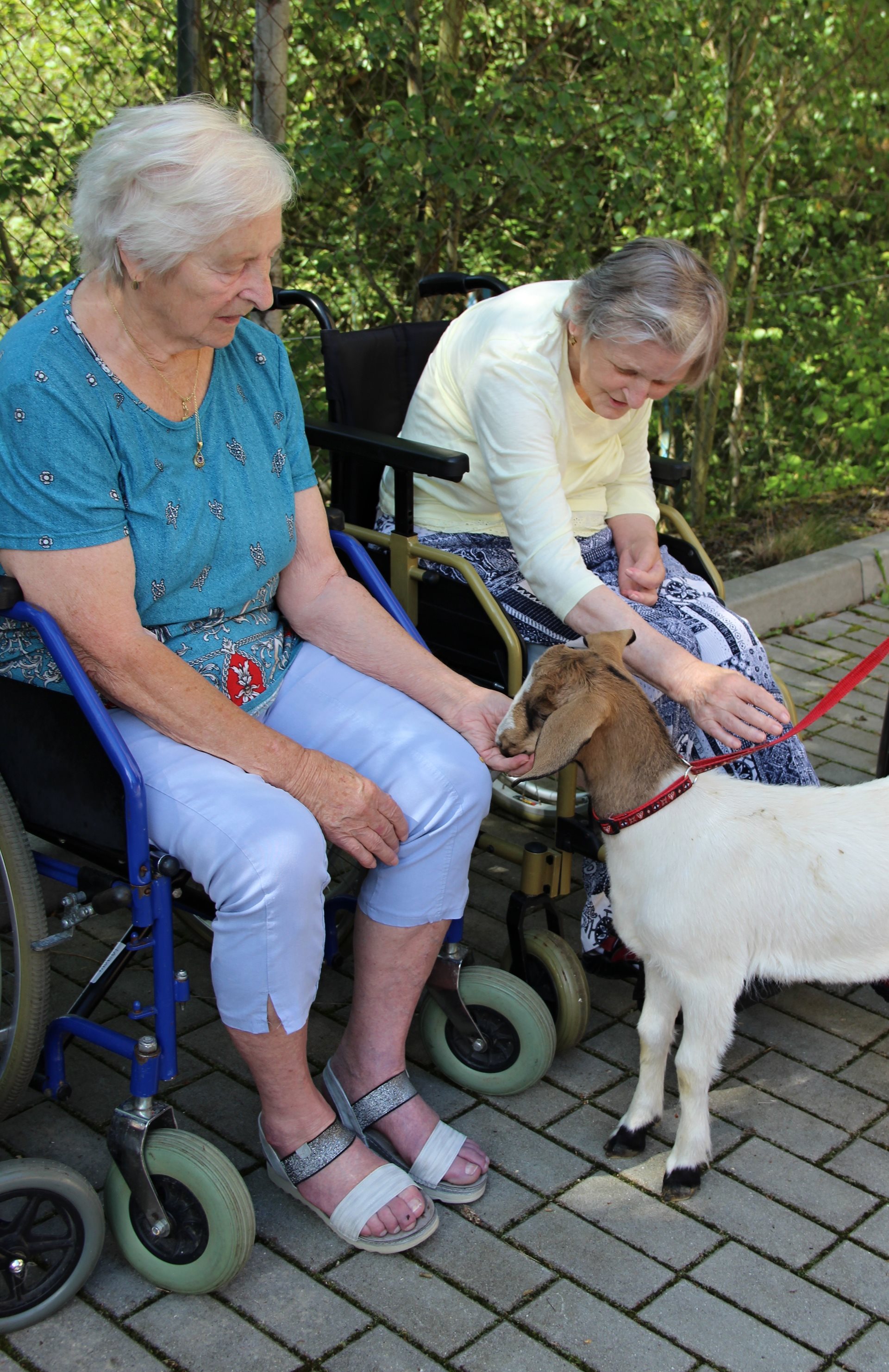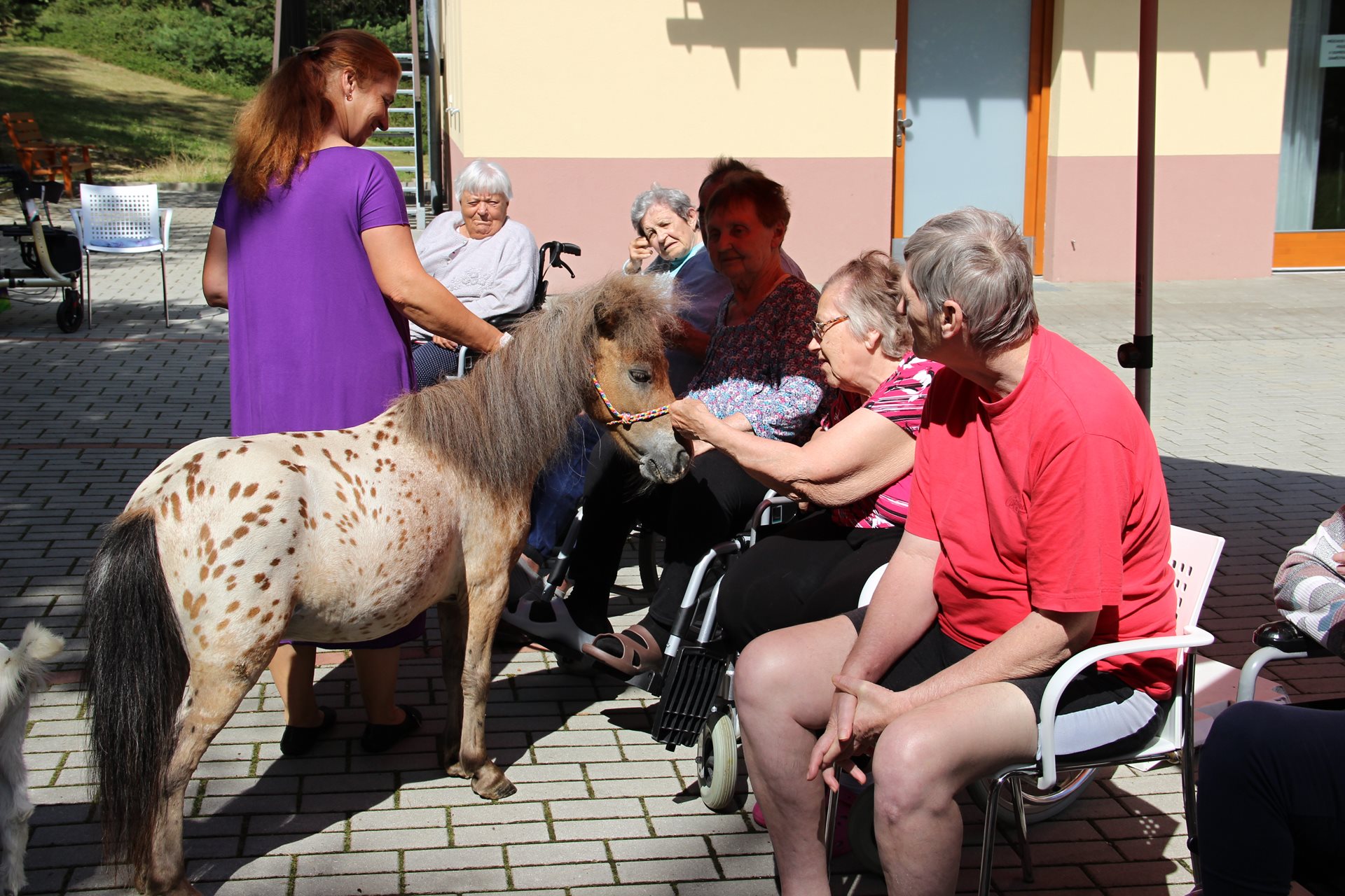 Již tradicí se stalo v Domově pro seniory letní setkání se zvířaty. Tentokrát paní Bukričová přivezla psy, slepice, králíčka, kozy i malého koně. Tolik zvířat v našem areálu je pro všechny velký zážitek!