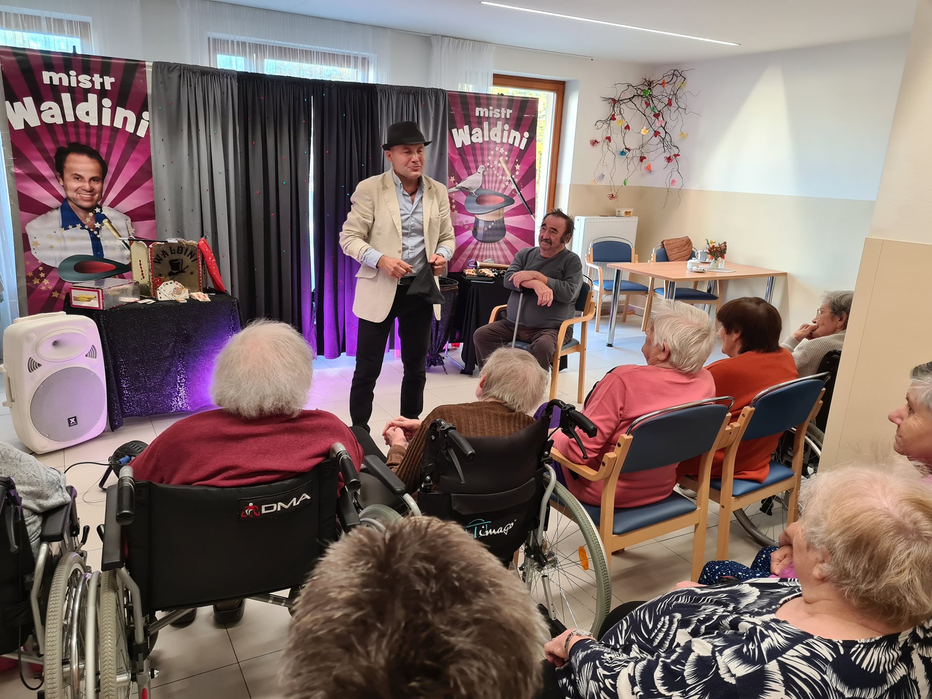 Užili jsme zde veselé kouzelnické představení, při kterém si někteří i zakouzlili nebo pohladili právě vykouzlené zvířátko.
