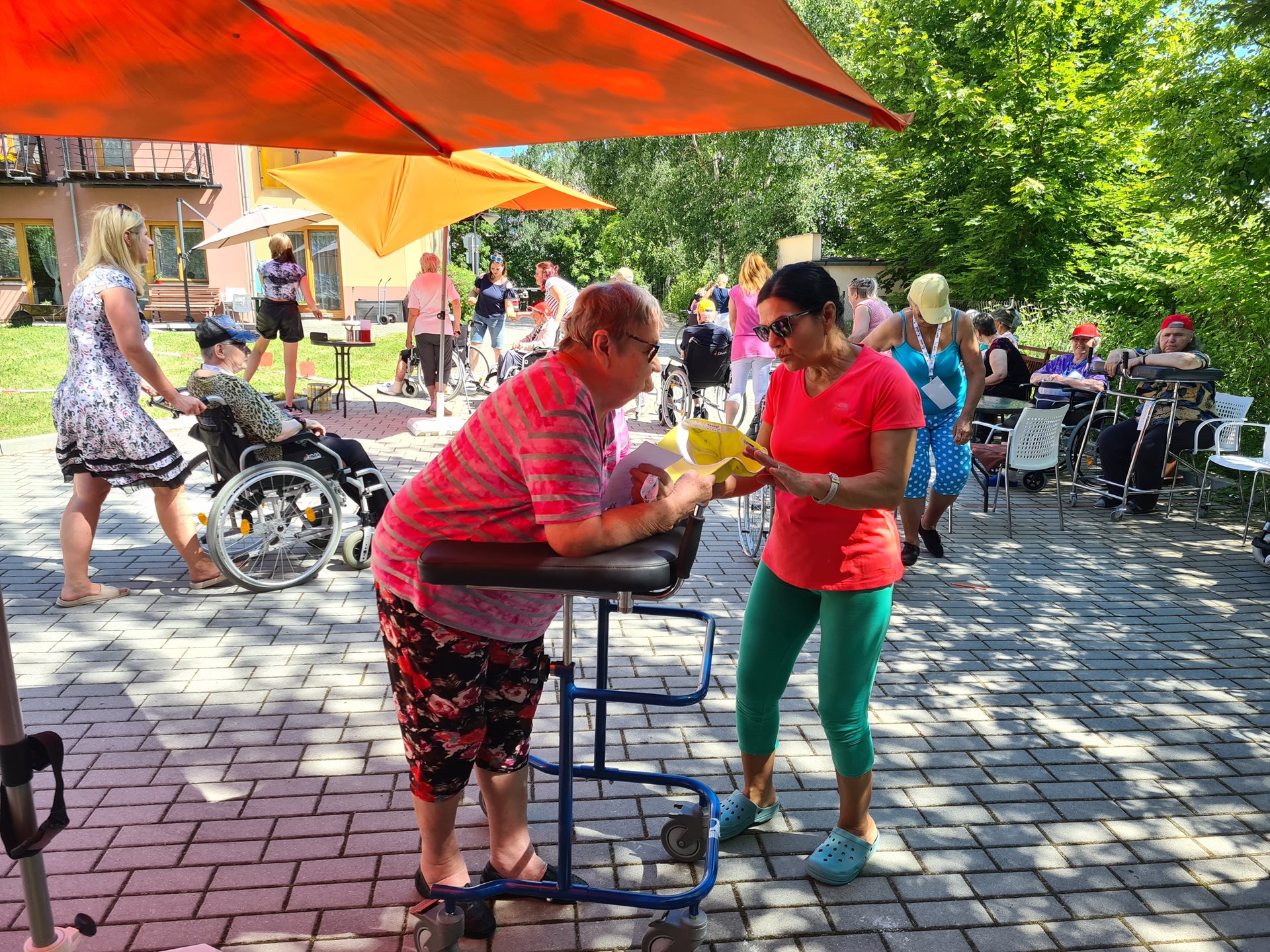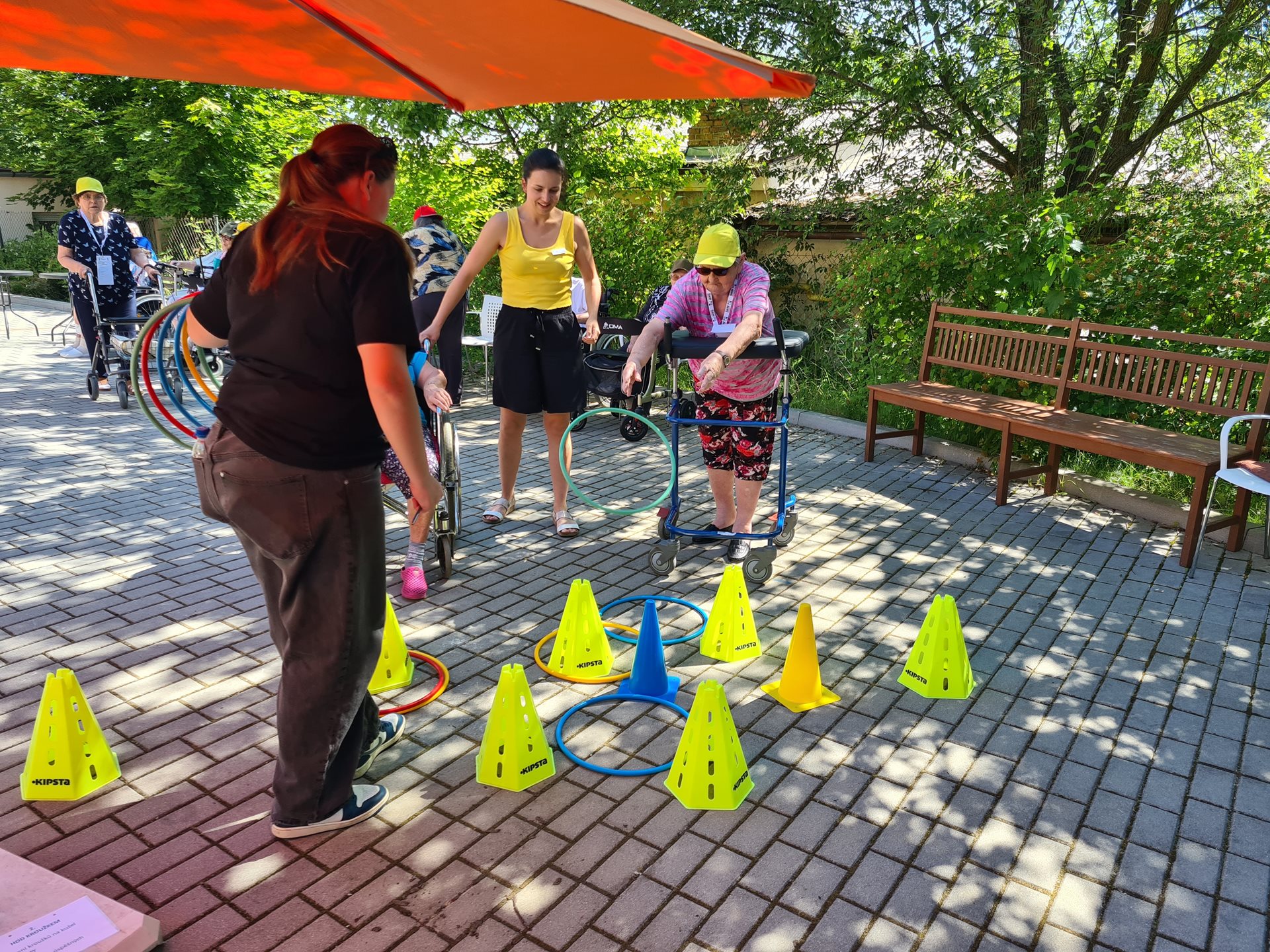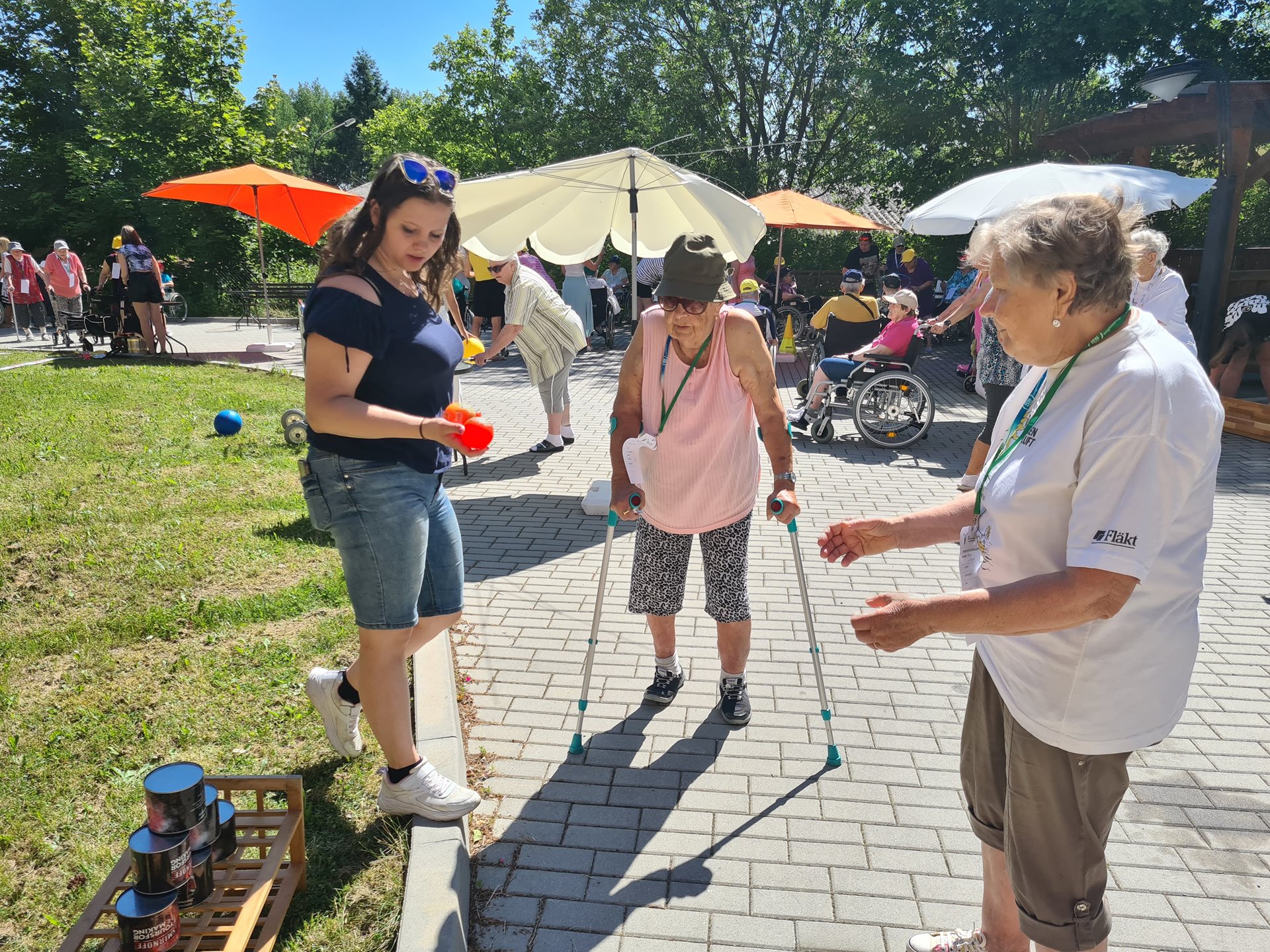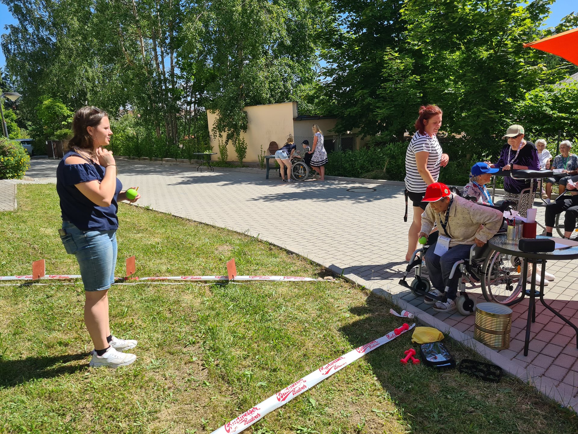 Ve středu 25. 6. se v Domově pro seniory sportovalo.Senioři si užili sportovní dopoledne. Plnili jednoduché sportovní disciplíny, házelo míčkem do dálky, do koše, na pyramidu z plechovek atd. Ale především si všichni užili společné setkání, na závěr si pochutnali na zmrzlině a odnesli si diplom.